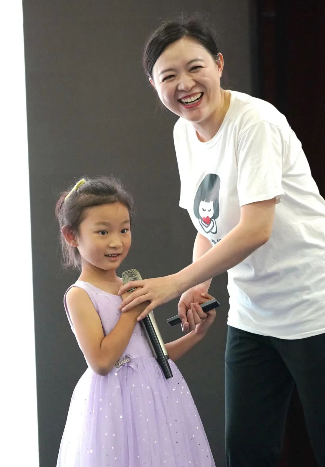 (孙雪梅在“女童保护”儿童防性侵亲子课堂上与孩子互动)