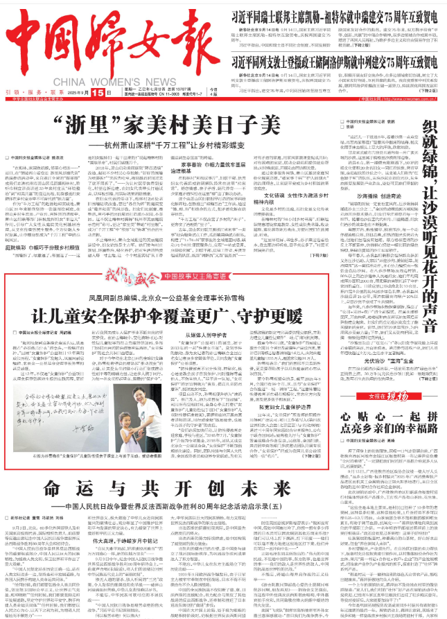 值此盛会召开之际,《中国妇女报》推出“我们的盛会·中国故事女主角寄语”栏目,聚焦各行各业的杰出女性,讲述新时代中国女性的追梦征程。9月15日,《中国妇女报》在头版专栏刊发了对“女童保护”发起人、北京众一公益基金会理事长、凤凰网副总编辑孙雪梅的专访报道,全国妇联官方公众号对报道内容进行了全文转载。