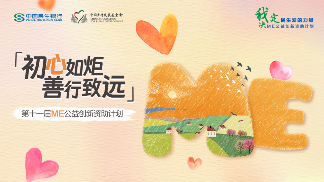 ME公益创新资助计划是中国民生银行联合中国乡村发展基金会于2015年发起的品牌公益项目,旨在支持公益领域的创新实践及社会影响力营造。